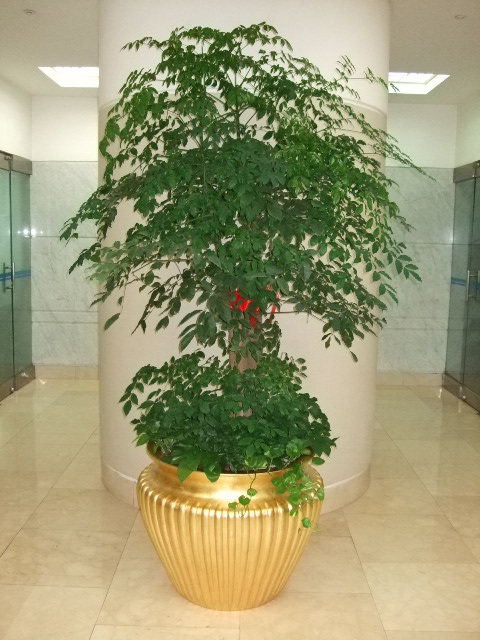 幸福树:学名菜豆树,它性喜高温多湿、阳光足的环境。耐高温,畏寒冷,宜湿润,忌干燥。栽培宜用疏松肥沃、排水良好、富含有机质的壤土和沙质壤土。花期5月至9月,果期10月至12月。 幸福树喜暖热环境,生长适温为20℃至30℃。盛夏酷暑期间,当环境温度达30℃以上时,要适当给予搭棚遮阴,增加环境和叶面喷水,或将其搬放 到有疏阴的通风凉爽处过夏。秋末降临,当环境温度降至10℃左右时,应及时将其搬放到棚室内。越冬期间,最好能维持不低于8℃的棚室温度,最低不得低于 5℃,以免出现冷害伤叶或落叶。家庭盆栽,可将其搬放到有空调或电热取暖器的室内,确保室温不低于8℃,使其能平安过冬。 盆栽幸福树,除要求在培养土中加入适量的腐熟饼肥和 3%的多元复合肥外,还应不间断给予追肥。生长季节可每月浇施一次速效液肥,通常可用腐熟的饼肥水。家庭少量盆栽,或对长时间作公共场所陈列的大型盆株, 可定期埋施少量多元缓释复合肥颗粒,也可用0.2%的尿素加0.1%的磷酸二氢钾混合液浇施。北方地区盆栽,中秋后可连续追施2次至3次0.3%的磷酸二 氢钾液,以增加植株的抗寒性,有利于其安全过冬。夏季气温高于32℃、秋末冬初气温低于12 ℃后,均应停止追肥。