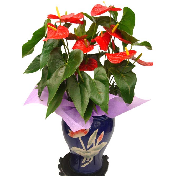 控制好光照。当光照过强时,有可能造成叶片变色、灼伤或焦枯现象。光照管理成功与否,直接关系到盆花的质量,关系到花的多少。红掌是喜荫植物,因此,在室内宜放置在有一定散射光的明亮之处,千万应注意不要把红掌放在有强烈太阳光趋直射的环境中。
